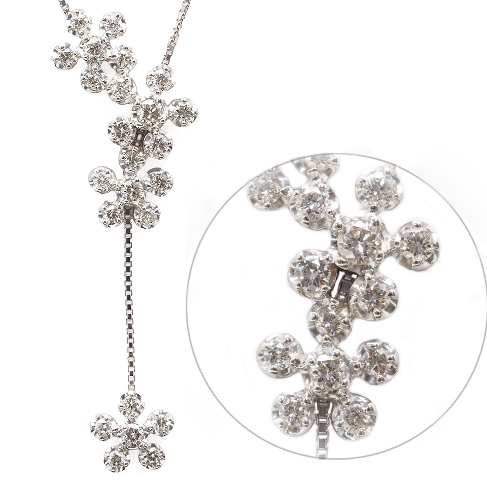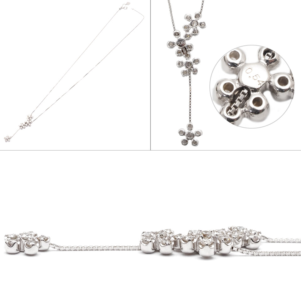 ダイヤモンドネックレス K18WG 0.54ct ホワイトゴールド フラワーモチーフ