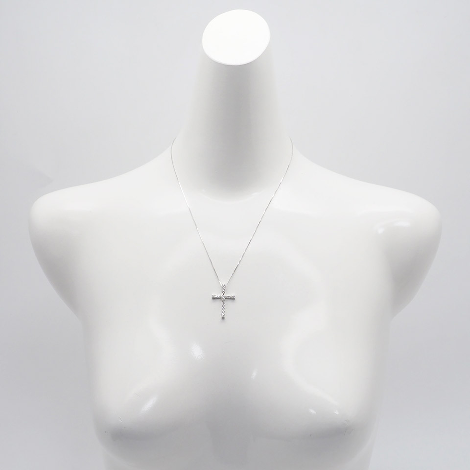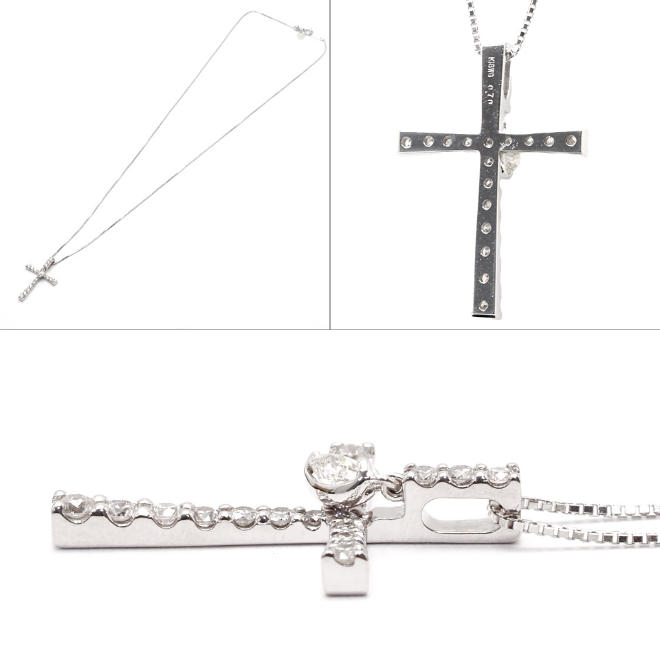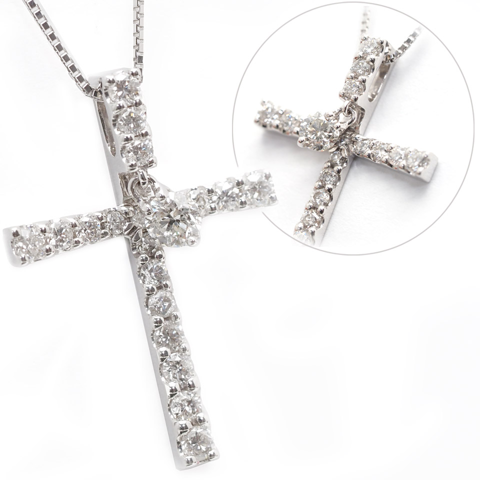 ダイヤモンドネックレス K18WG 0.70ct ホワイトゴールド クロスペンダント