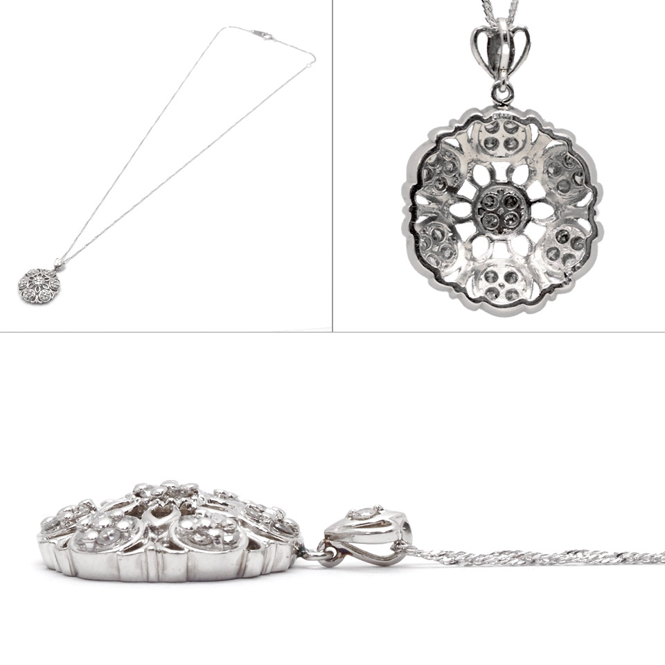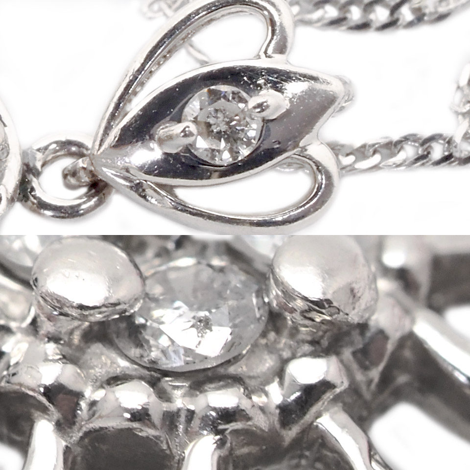 | 備 考 | 重さ:約6.5g ダイヤ:0.50ct 地金のプラチナをフラワーモチーフに仕上げたダイヤモンドネックレスです。 天然宝石の為、ダイヤに内包物がございます。 当サイトに掲載している商品は、店頭でも展示・販売している場合がございます。 そのため撮影時にはなかったダメージや劣化が生じることがございます。 詳細、ご不明な点は事前にお問い合わせください。 [M]1105 |