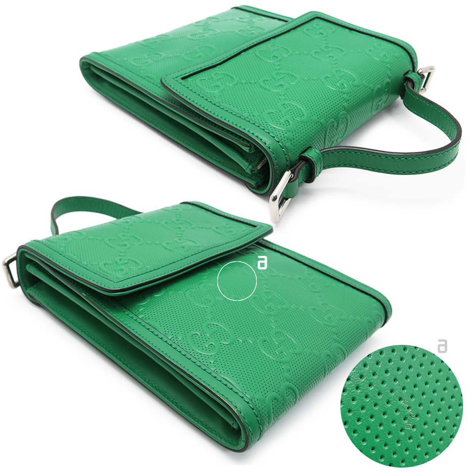 | 備 考 | マグネット付きフラップ開閉 コンパートメント2 カードポケット4 ファスナー付きポケット(仕切り)1 GGエンボス メッセンジャーバッグが入荷いたしました。 前面中央に引っかきキズ(a)がございます。 当サイトに掲載している商品は、店頭でも展示・販売している場合がございます。 そのため撮影時にはなかったダメージや劣化が生じることがございます。 詳細、ご不明な点は事前にお問い合わせください。 [N]0120 |