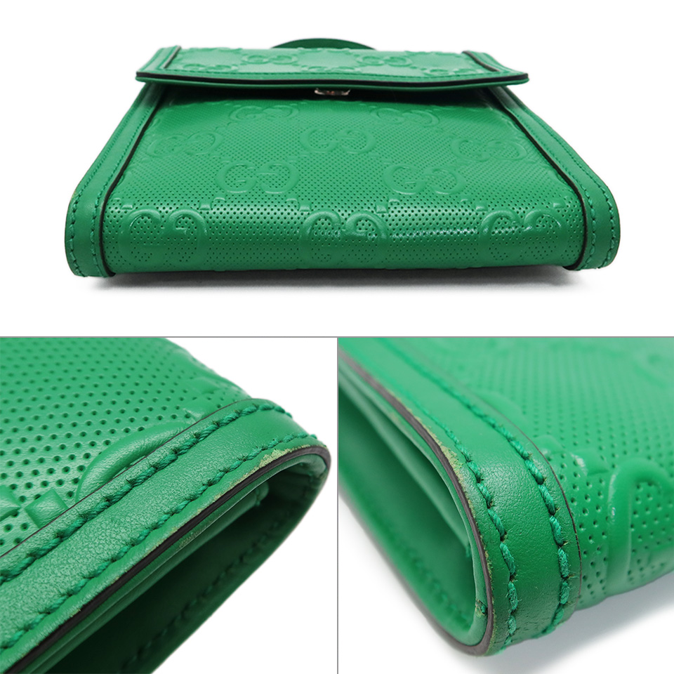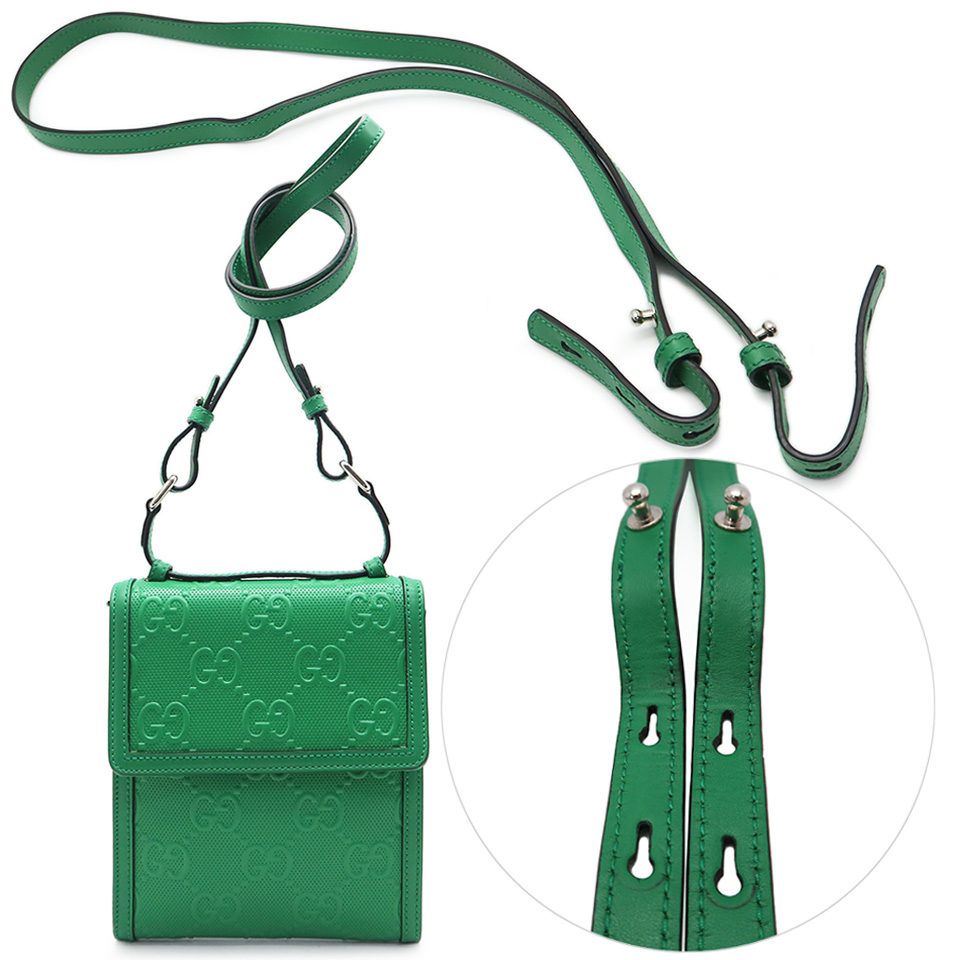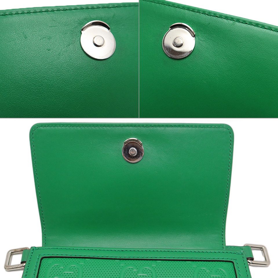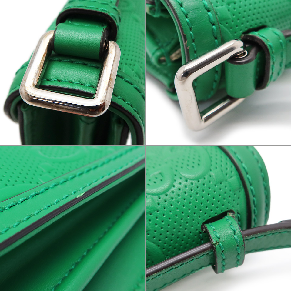 GUCCI グッチ GGエンボス メッセンジャーバッグ 625782 レザー グリーン×シルバー金具