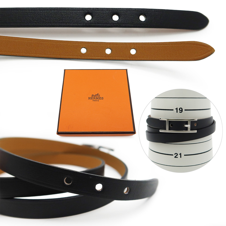 HERMES エルメス アピブレス [P]刻印 ソルド レザー ブラック×シルバー金具 ブレスレット チョーカー 【中古】