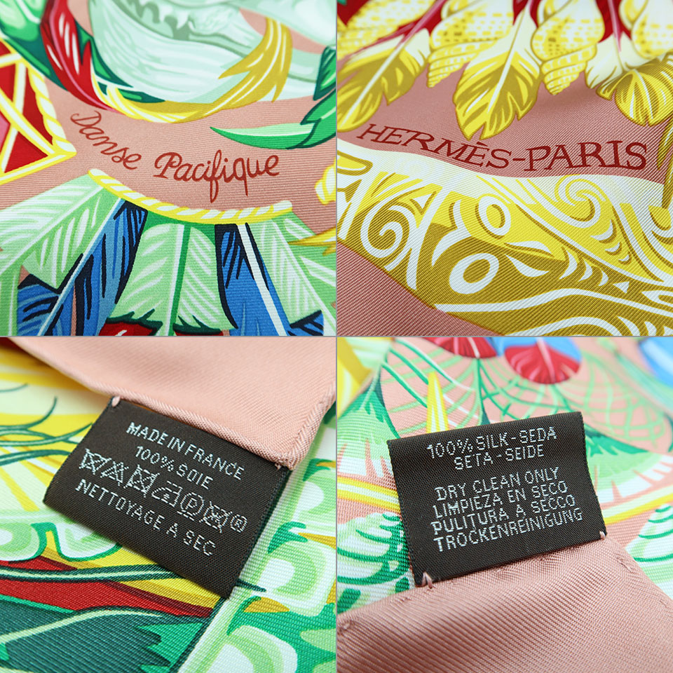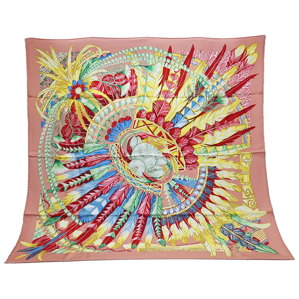 HERMES エルメス カレ90:Dance Pacifique シルク100% ピンク×マルチカラー