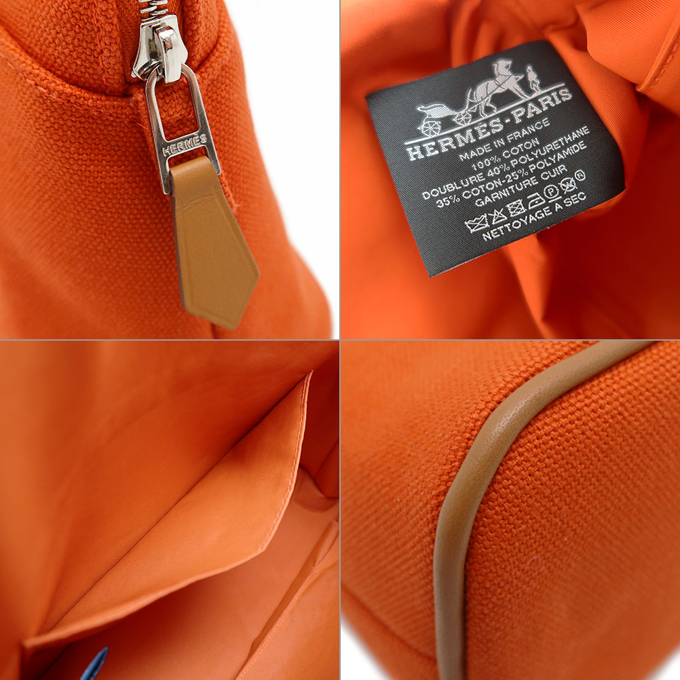 HERMES エルメス ボリードポーチMM H104774M 02 ミニ コットンキャンバス オランジュ・フー×シルバー金具 【中古】