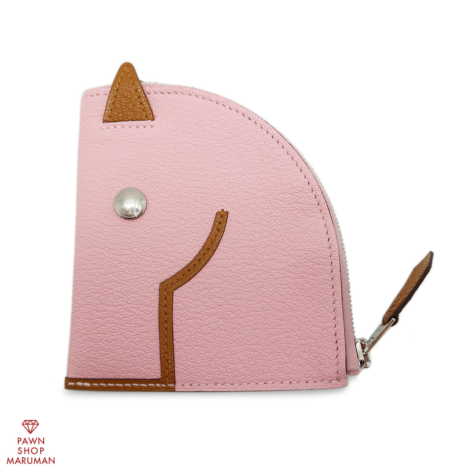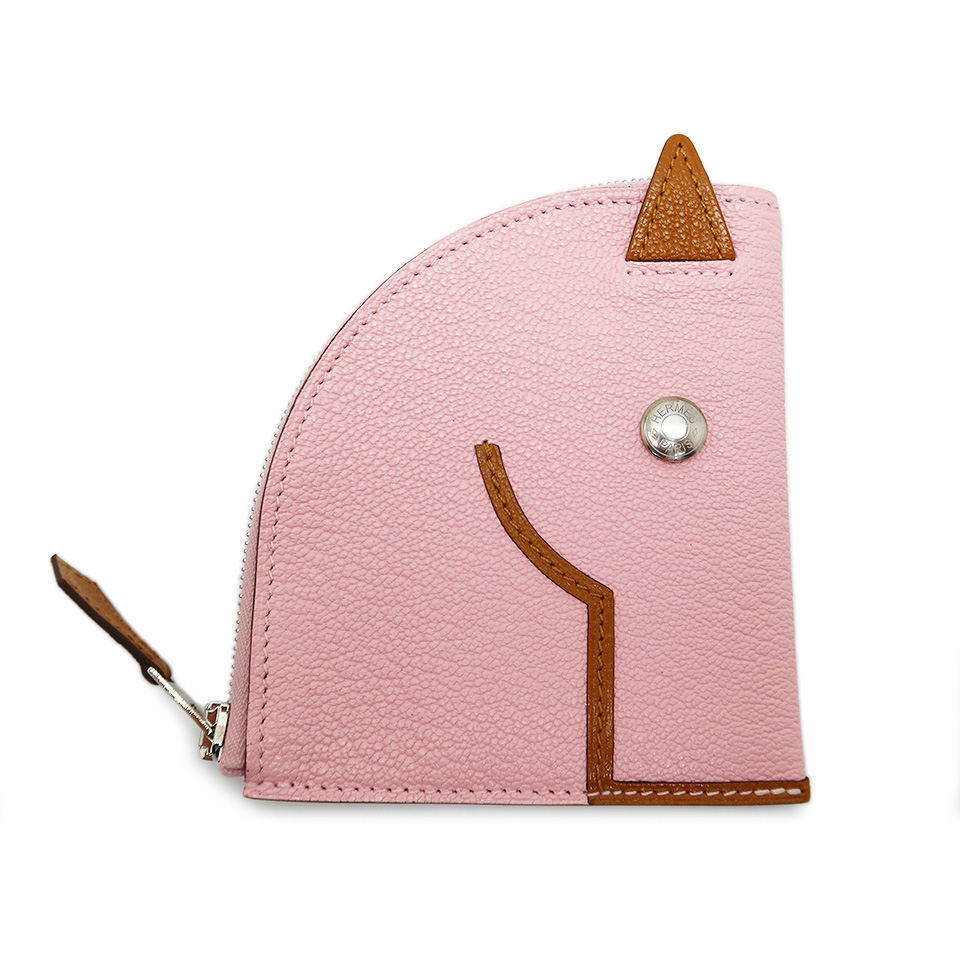 HERMES エルメス パドック コインケース Z刻印 シェブルミゾル ローズサクラ×キャメル×シルバー金具 【中古】
