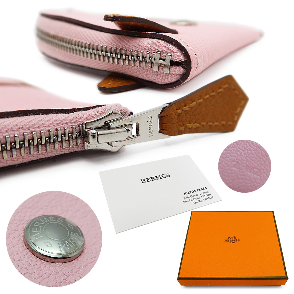HERMES エルメス パドック コインケース Z刻印 シェブルミゾル ローズサクラ×キャメル×シルバー金具
