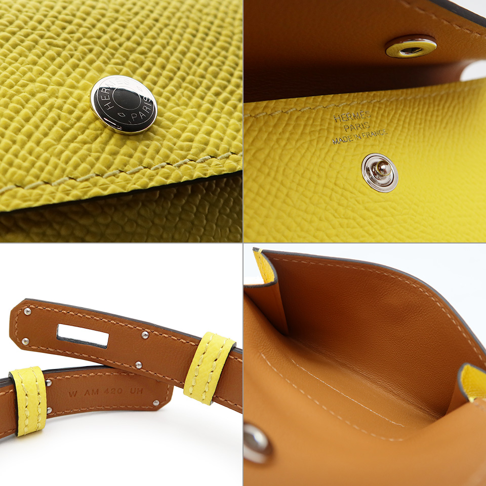 HERMES エルメス ケリー ポケットベルト W刻印 ヴォーエプソン イエロー系×シルバー金具