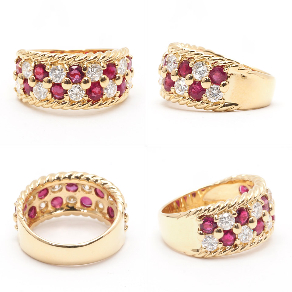 | 備 考 | 重さ:約7.2g ルビー 1.19ct ダイヤ 0.95ct 鮮やかなルビーと煌めくダイヤモンドを交互にセッティングしました。 天然宝石の為、ダイヤ、ルビーに内包物がございます。 当サイトに掲載している商品は、店頭でも展示、販売している場合がございます。 そのため撮影時にはなかったダメージや劣化が生じることがございます。 詳細、ご不明な点は事前にお問い合わせください。 [M]0501 |