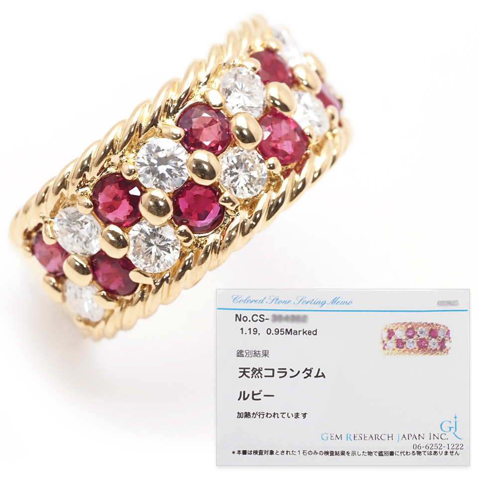 ルビー ダイヤモンドリング K18YG 1.19ct 0.95ct #11 イエローゴールド 11号