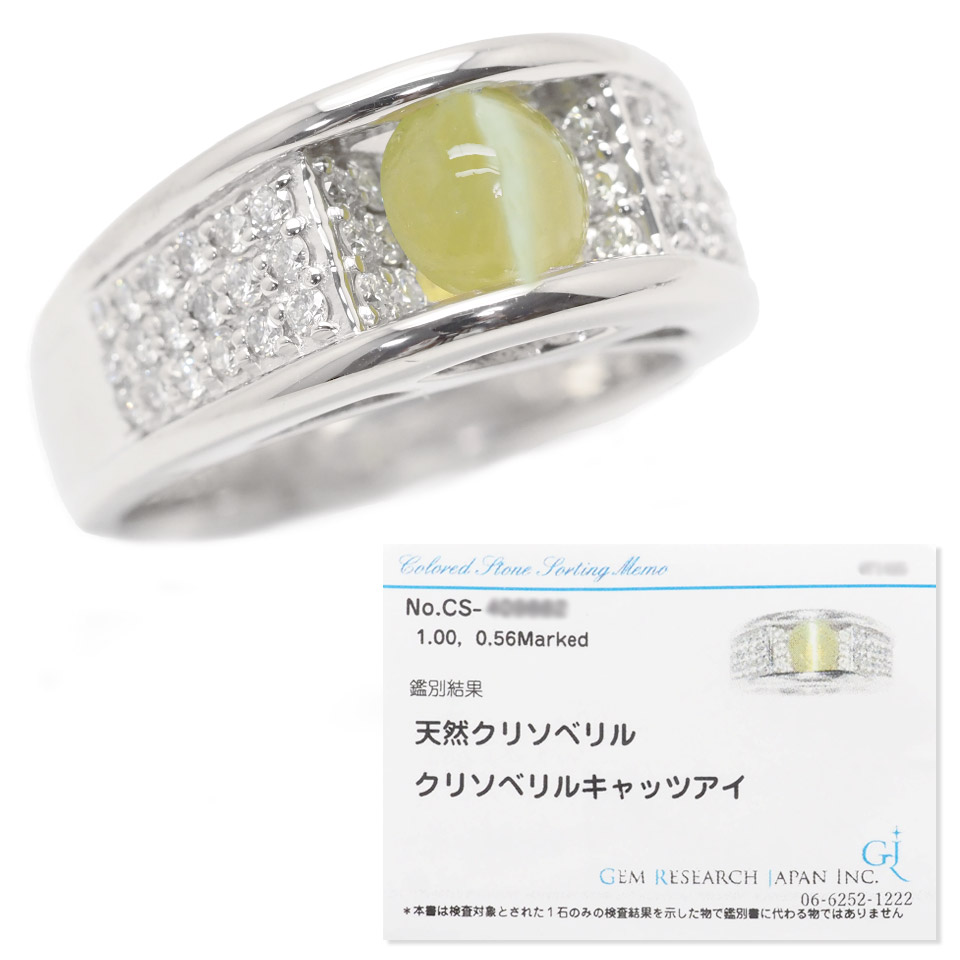 クリソベリルキャッツアイ メレダイヤモンドリング Pt9001.00ct 0.56ct #13 プラチナ 13号