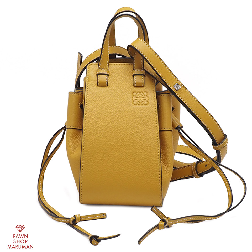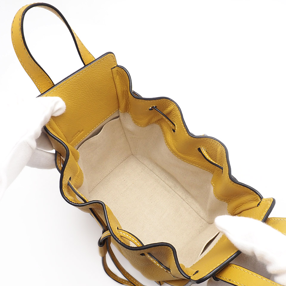 LOEWE ロエベ アナグラム ハンモック ドローストリングミニバッグ カーフ イエロー×シルバー金具 【中古】