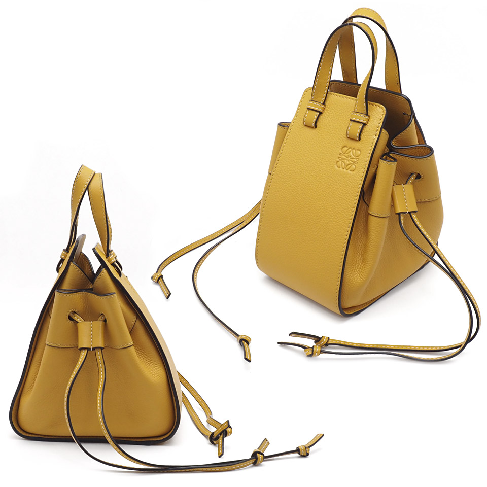 LOEWE ロエベ アナグラム ハンモック ドローストリングミニバッグ カーフ イエロー×シルバー金具