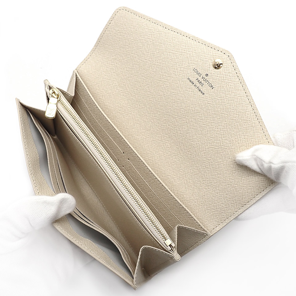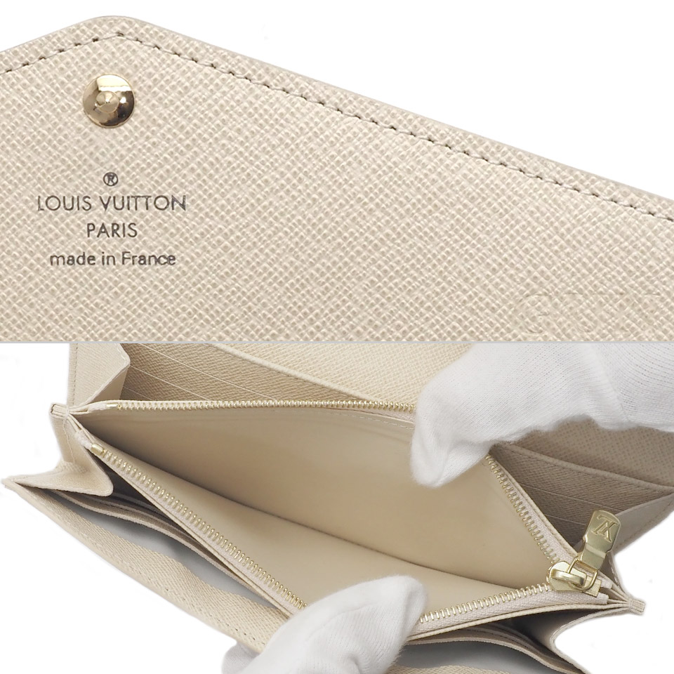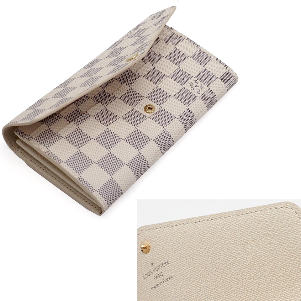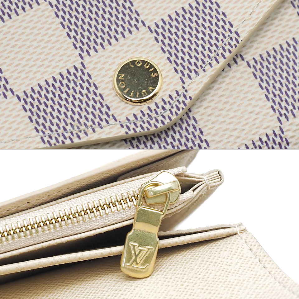 LOUIS VUITTON ルイヴィトン ダミエアズール ポルトフォイユ サラ N63208 ダミエアズールキャンバス×レザー アイボリー×ゴールド金具 イニシャル刻印あり