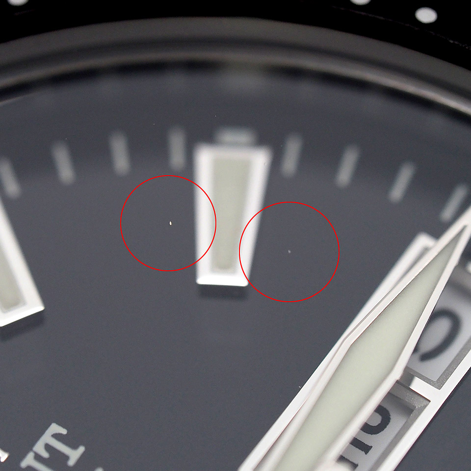 | 備 考 | 自動巻き(手巻き付き) 20気圧防水 日付・曜日表示(日本語・英語) 逆回転防止ベゼル 耐磁一種 カジュアルでスッキリしたダイバースタイルデザインでありながら時針をアロー形状としサファイアクリスタルを採用することで視認性を向上。 文字盤内にほこりが混入しています。 当サイトに掲載している商品は、店頭でも展示・販売している場合がございます。 そのため撮影時にはなかったダメージや劣化が生じることがございます。 詳細、ご不明な点は事前にお問い合わせください。 [M]1114 |