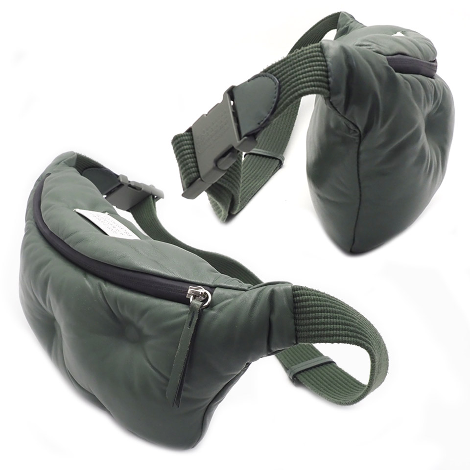 | 備 考 | ファスナー開閉 ファスナー付きポケット1 手触りがなめらかなソフトレザーで仕上げ、中綿入りのモコモコボディのメゾンマルジェラのボディバッグが入荷しました。 上部にはメゾンの数字タグがおしゃれです! バックルにも数字ロゴがデザインされています。 アーミーなイメージのカーキは、カジュアルなスタイルにおすすめなアクティブバッグです。 やや型崩れがございます。 当サイトに掲載している商品は、店頭でも展示・販売している場合がございます。 そのため撮影時にはなかったダメージや劣化が生じることがございます。 詳細、ご不明な点は事前にお問い合わせください。 [N]0204 |