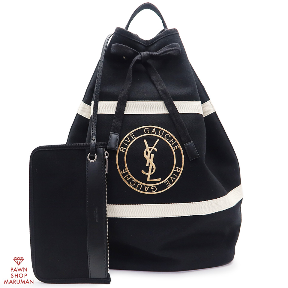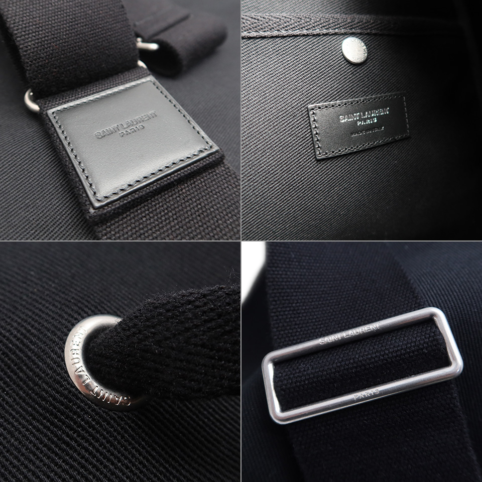 SAINT LAURENT サンローラン リヴゴーシュ スリングバッグ 734682 コットンキャンバス ブラック×シルバー金具