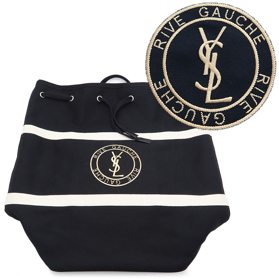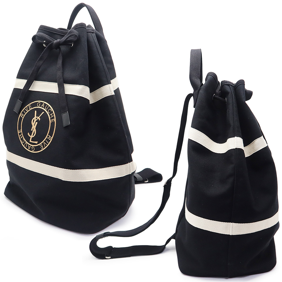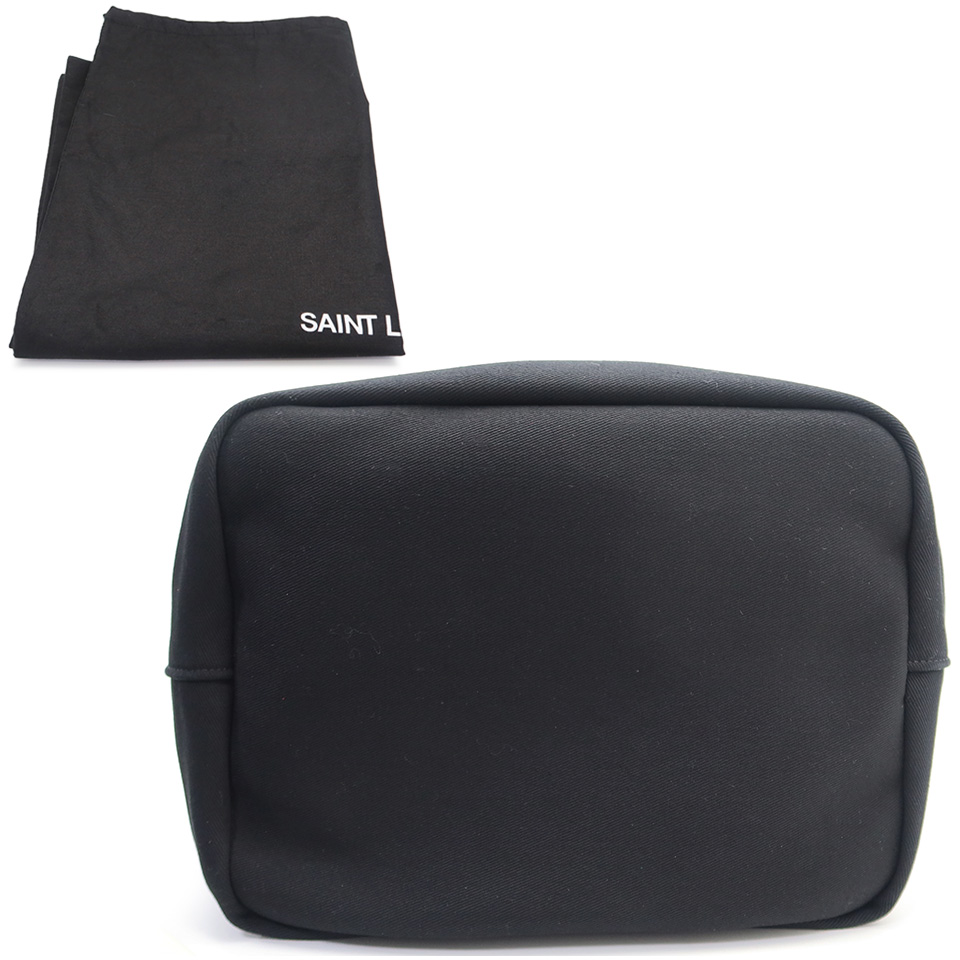 SAINT LAURENT サンローラン リヴゴーシュ スリングバッグ 734682 コットンキャンバス ブラック×シルバー金具 【中古】