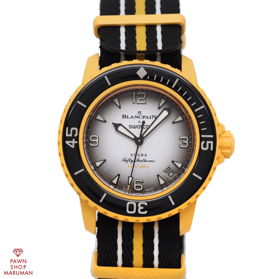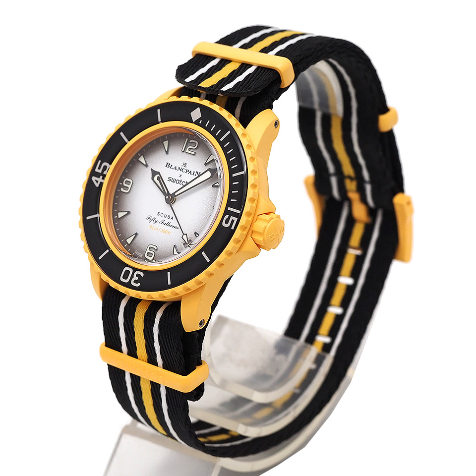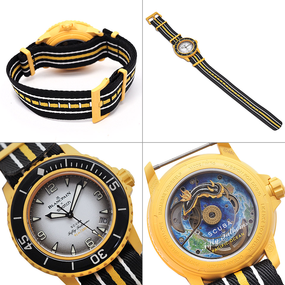 SWATCH スウォッチ BLANCPAIN(ブランパン)コラボ フィフティファゾムス パシフィックオーシャン SO35P100 自動巻き バイオセラミック×ナイロン ホワイトグラデーション 【中古】