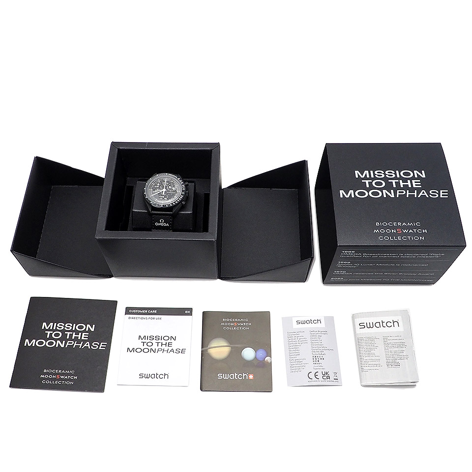 SWATCH スウォッチ オメガコラボ ミッショントゥ ザ ムーンフェイズ スヌーピー SO33B700 クォーツ バイオセラミック×ナイロン ブラック