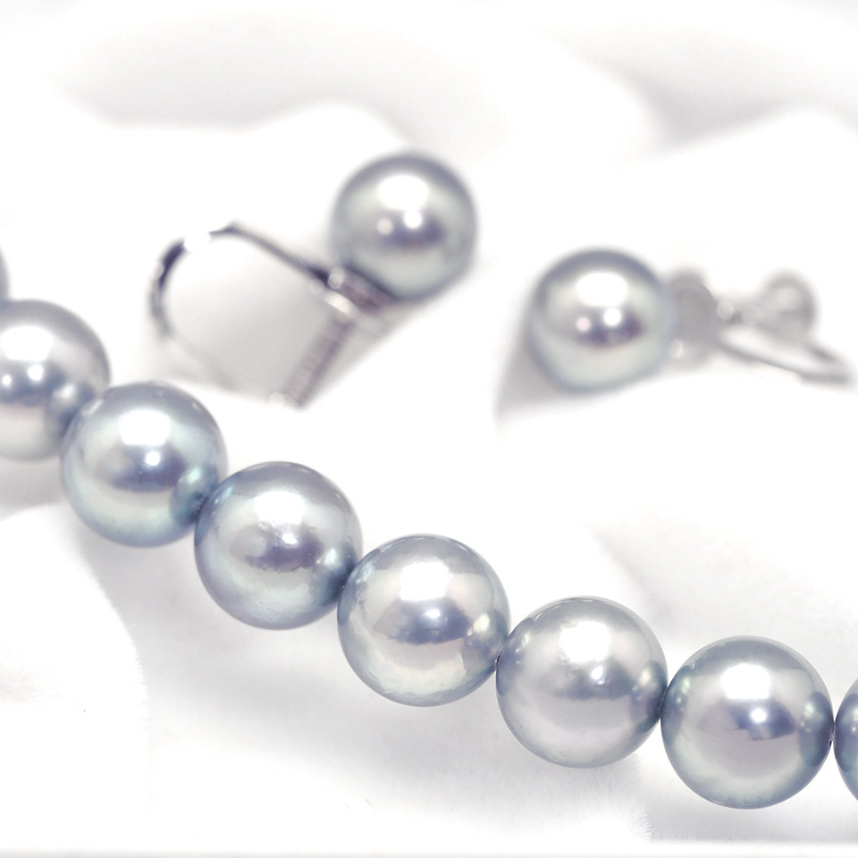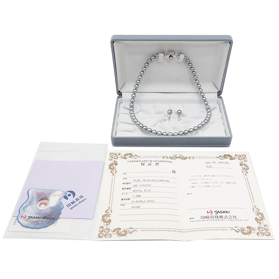 TASAKI タサキ アコヤパールネックレス ブルー系 約7.5mm珠 イヤリングセット (イヤリング留め具K14WG)